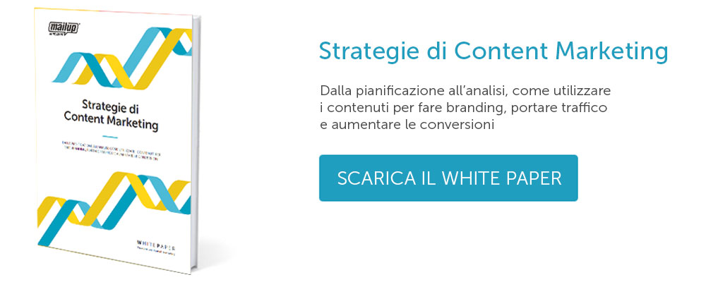 Proprio a quest’argomento abbiamo dedicato uno dei nostri ultimi white paper: si chiama Strategie di Content Marketing, un percorso teorico e pratico tra le attività che ruotano attorno ai contenuti: dalla pianificazione all’analisi, per fare branding, portare traffico e aumentare le conversioni.