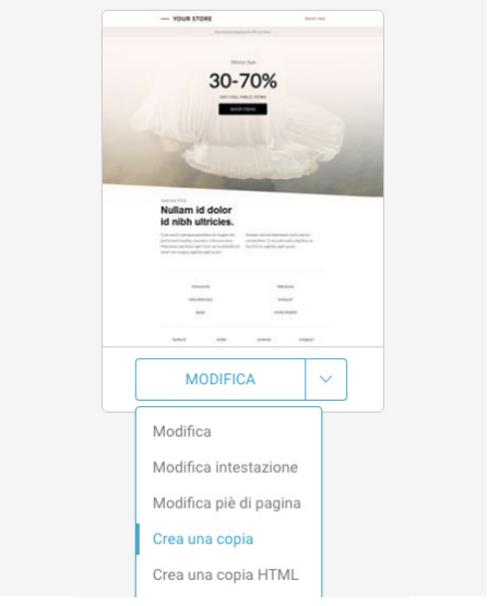 Parti da un messaggio email salvato nella piattaforma MailUp. A questo punto crea la copia (o le copie) dell’email originale su cui lavorare alla variabile.