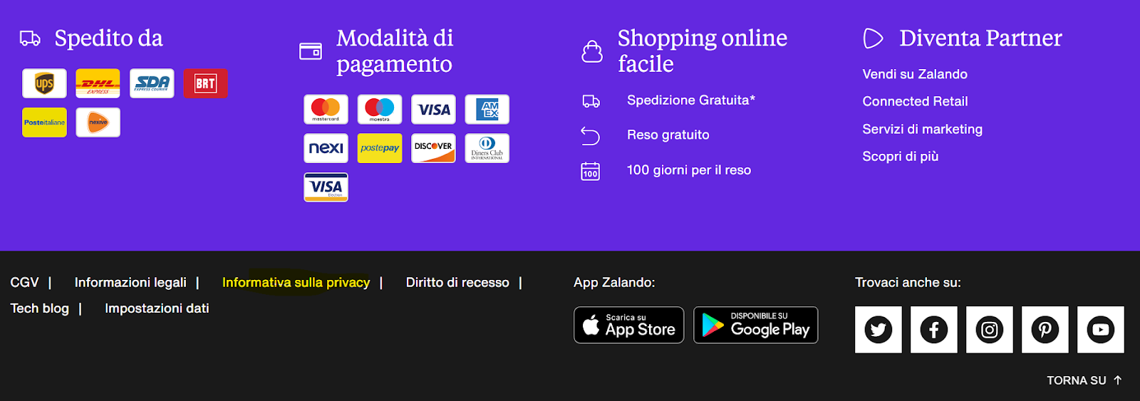 Molti e-commerce indicano l’Informativa privacy di un sito web nel modello GDPR a piè pagina: