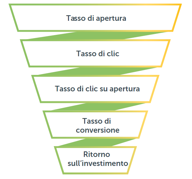 Il funnel dei KPI evidenzia le modalità con cui un destinatario si relaziona con il messaggio. Scopri come si misura ciascuna metrica e quali sono le azioni per migliorarla nell’ebook di MailUp!