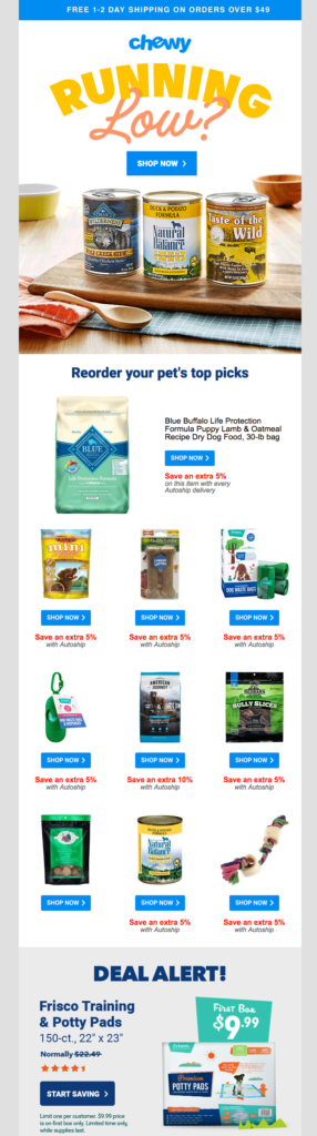 Sulla base degli acquisti effettuati in passato o dei servizi di cui ha usufruito l’utente puoi creare touchpoint personalizzati che si aggiungono al suo viaggio, spingendolo a un nuovo acquisto o a ritornare sul tuo sito web, come nei seguenti esempi