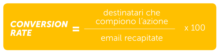 Il conversion rate è la percentuale di destinatari che ha cliccato sul link all’interno dell’email e ha completato l’azione desiderata, come la compilazione di un modulo o l’acquisto di un prodotto.