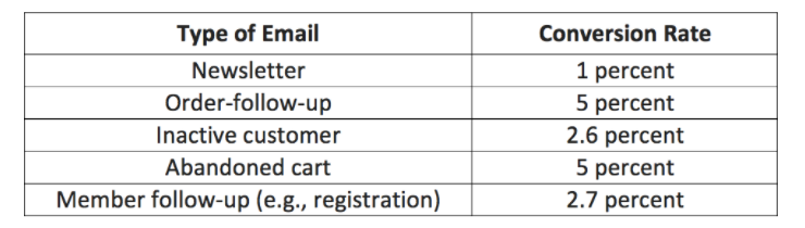 In generale, qual è un buon tasso di conversione per l’Email Marketing? Premesso e compreso che la migliore risposta è “dipende” (dal tipo di email inviata, dal settore commerciale in cui si opera e da altri fattori), uno studio di Remarkety ha fissato alcune percentuali di riferimento.