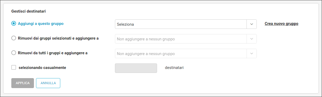 Un esempio può essere quello di creare due gruppi di destinatari, “Mare” e “Montagna” e poi creare un modulo di autoprofilazione per capire quale tipo di meta vacanziera preferisce il tuo pubblico. I destinatari rispondendo verranno iscritti al gruppo corrispondente e potranno ricevere email con contenuti mirati sul loro interesse.