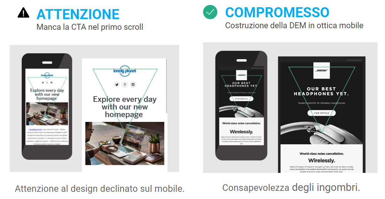Un dato che per le aziende non significa solo ottimizzare le email per visualizzazioni su tutti gli schermi, ma anche cambiare l’approccio con cui si progettano i vari elementi delle campagne: dalle immagini allo sfondo, dai colori ai bottoni di call to action.