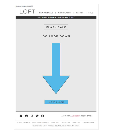 Nella stessa prospettiva ludica, Loft ha incentrato il messaggio su un ostentato invito al clic, ironizzando su questa dinamica chiave dell’Email Marketing.