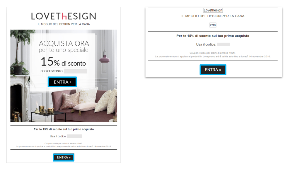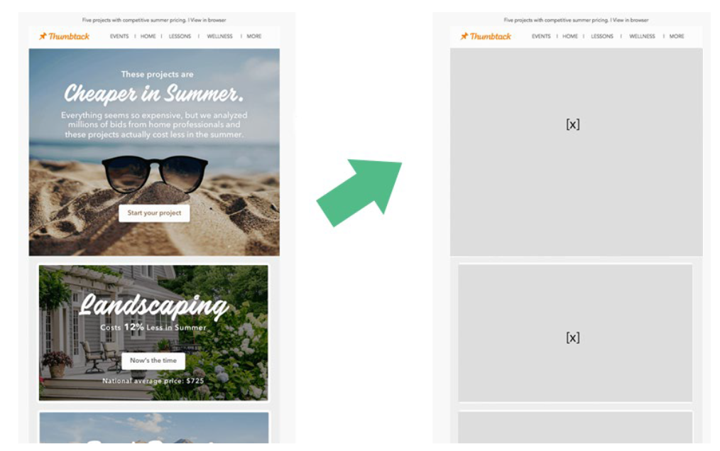 Le image-only sono quelle email costruite come un’unica grande immagine che comprende testi e bottoni di call to action. Si tratta di un’opzione pericolosa, perché finiscono spesso nelle cartelle spam e, non essendo ottimizzate per i dispositivi mobili, possono non essere scaricate completamente.
