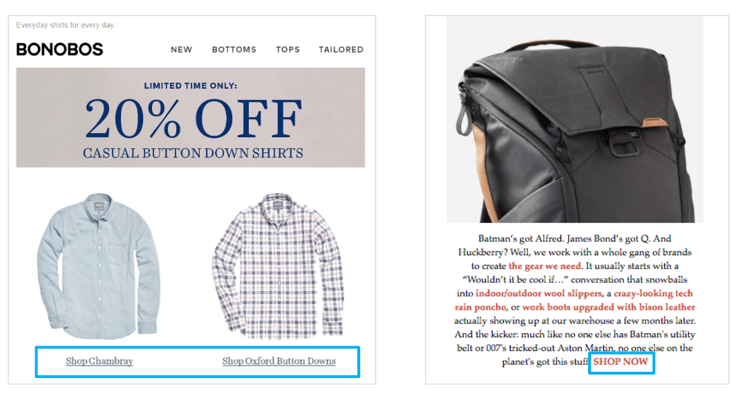 A volte la call to action può anche presentarsi non come un bottone, ma come un testo. Si tratta però di un’opzione non consigliabile in ottica mobile, dal momento che una stringa di testo (seppur ben evidenziata con colore e bold) risalta troppo poco nell’insieme.