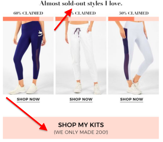 - Scarsità: proponi offerte limitate nel tempo, per posti o funzionalità. Si tratta di un principio di psicologia del marketing molto usato che, da una parte, fa appello all’istinto umano di evitare una perdita, e dall’altra sottolinea la qualità di ciò che viene offerto. Nella pratica: inserisci nella tua email un countdown per la fine dell’offerta o un testo che indichi le unità ancora disponibili sopra il banner che porta alla pagina di acquisto di un prodotto.