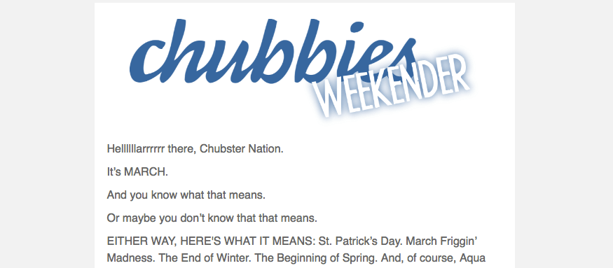 Se scegli invece di personalizzare il tuo header, non guasta avere alcune versioni fisse: i cosiddetti template. Mentre la newsletter Unstyled ha sempre un header personalizzato per ogni email, Chubbies ruota tra almeno tre diversi header: