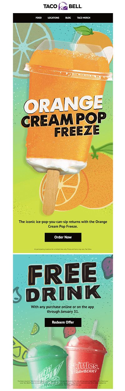 Sì, gli anni ’90 sono tornati, dai colori fluo ai marsupi. Ecco che nell’Email Marketing vediamo riemergere anche i gradienti. Queste sfumature aggiungono profondità e danno un senso di movimento, di tensione cromatica, di vibrazione che ben si intona al mare e all’estate in generale.