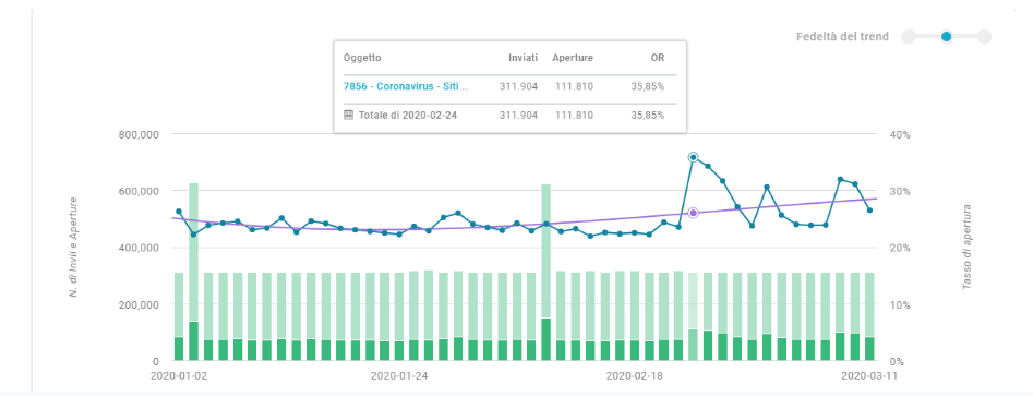 Nonostante la situazione generale lasci poco spazio agli aspetti positivi, siamo soddisfatti di riscontrare come – anche in periodi di difficoltà – ci sia una risposta forte da parte dei destinatari delle email.