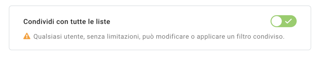 Basta un clic per rendere disponibile e applicabile il filtro avanzato a tutte le altre tue liste di destinatari. Questo ti consentirà di creare dei filtri solo relativi a una lista e altri applicabili indistintamente a tutti gli ambienti