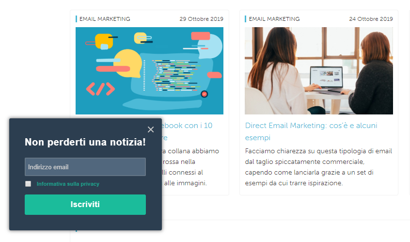 Ecco il pop-up che abbiamo creato per ilnostro blog: