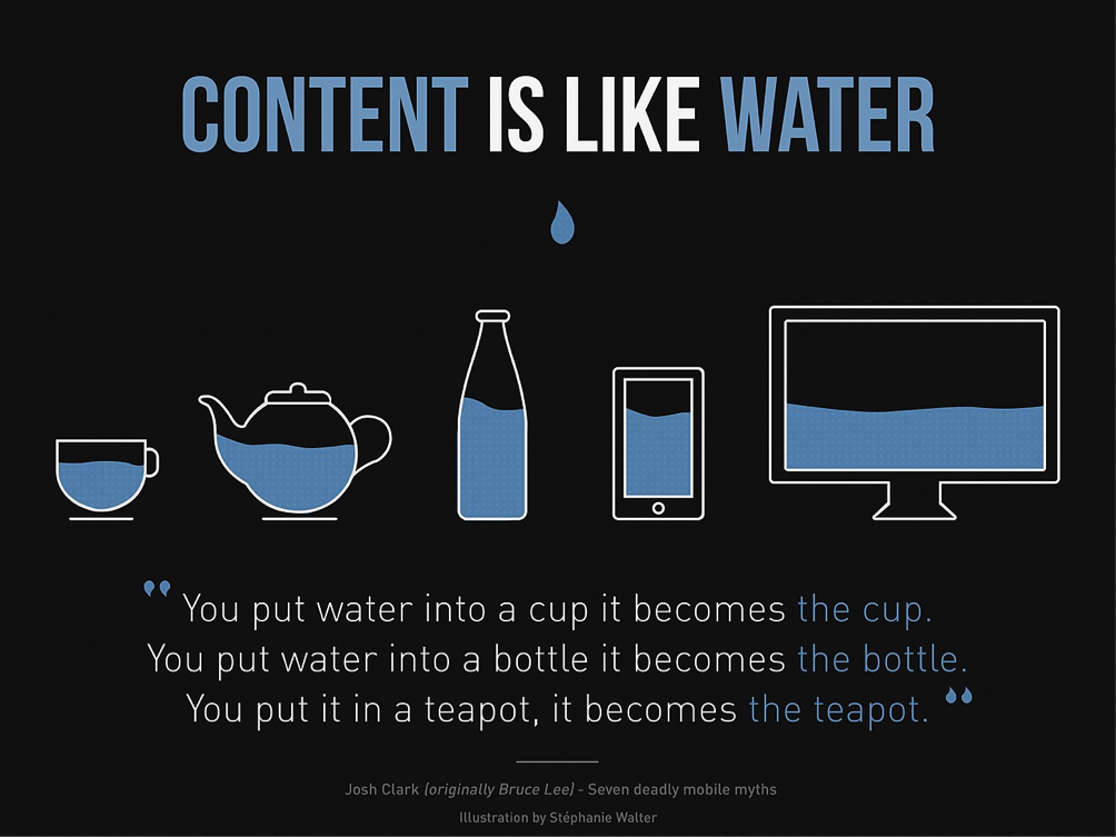 Per essere sintetici – parafrasando Bruce Lee – il contenuto è come l’acqua: se metti l’acqua in una tazza, diventa la tazza; se metti l’acqua in una bottiglia, diventa la bottiglia; se metti l’acqua in una teiera, diventa la teiera.