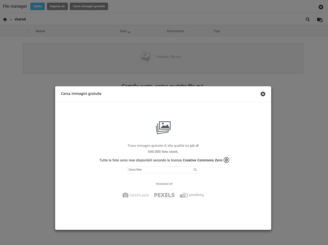 Puoi trovare foto stock gratuite e ad alta risoluzione direttamente nell’editor: scegline una per questo progetto (o, in alternativa, carica una tua foto o incolla l’indirizzo URL di un’immagine).