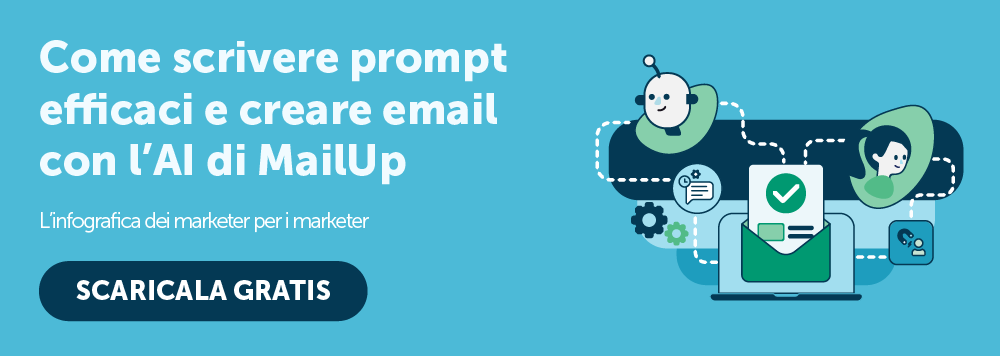 Cosa aspetti quindi? Scarica subito l’infografica, è gratis. E non dimenticare di metterla in pratica quando sperimenterai l’AI Assistant di MailUp!