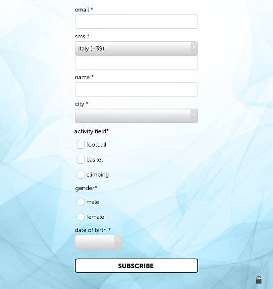 - Data (o date picker), per richiedere ai contatti informazioni come la data di nascita, per inviare in seguito puntuali comunicazioni il giorno del compleanno.