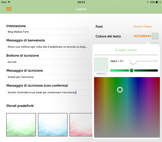 - Font e colore del testo: da oggi puoi scegliere per il tuo modulo tra un ventaglio di 11 font per il testo, con la possibilità di definirne il colore, per dare al tuo modulo maggiore leggibilità o un aspetto più gradevole, a seconda del gusto.