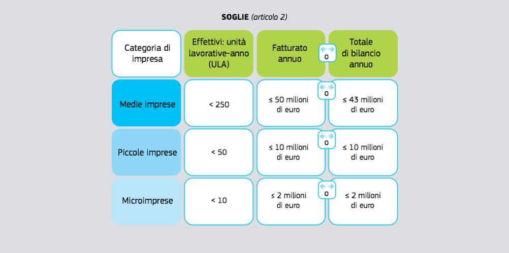 Soglie di classificazione delle PMI. Fonte: sito Unione Europea.