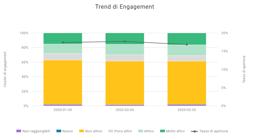 Nello specifico, Statistiche Engagement consente di visualizzare nel dettaglio: