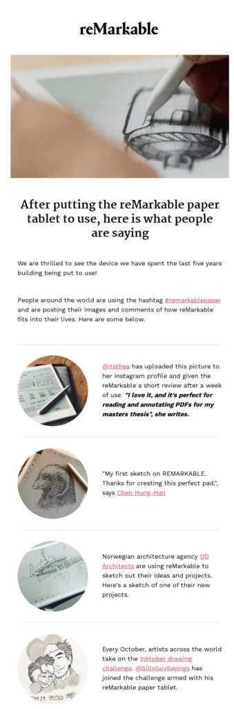 - coinvolgi i sensi per creare una connessione emotiva con il lettore. Il 75% degli acquirenti afferma che preferisce “sentire” un prodotto prima di acquistarlo. Inserisci nelle tue email elementi che facciano appello ai 5 sensi usando immagini, gif, video che richiamino il mondo sensoriale.
