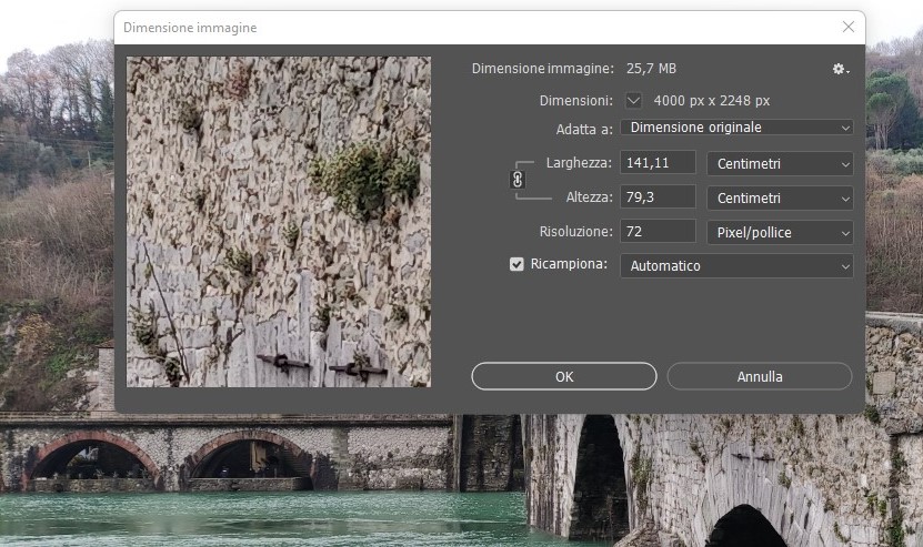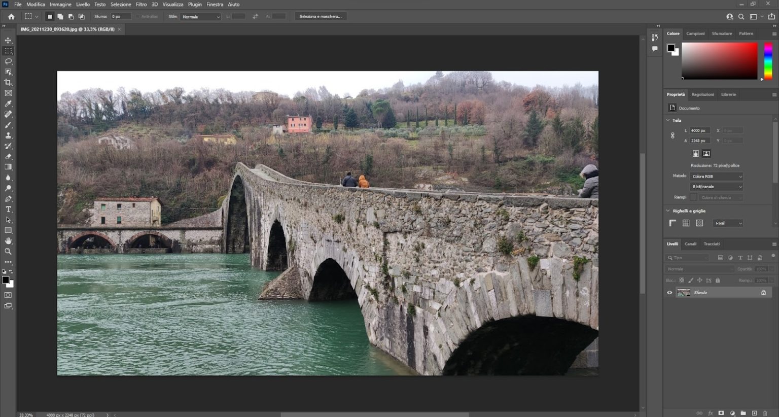 L’immagine utilizzata nell’esempio che segue è stata scattata con uno smartphone e pesava in origine 25.7 MB per una risoluzione pari a 4000 x 2248 px.