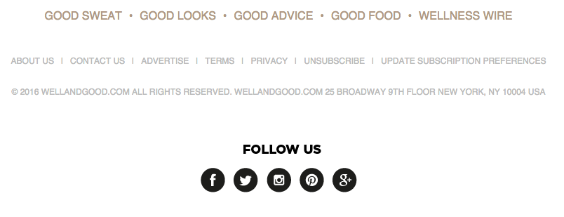 Confrontiamolo ora con questo footer di Well+Good, sito di fitness e salute: