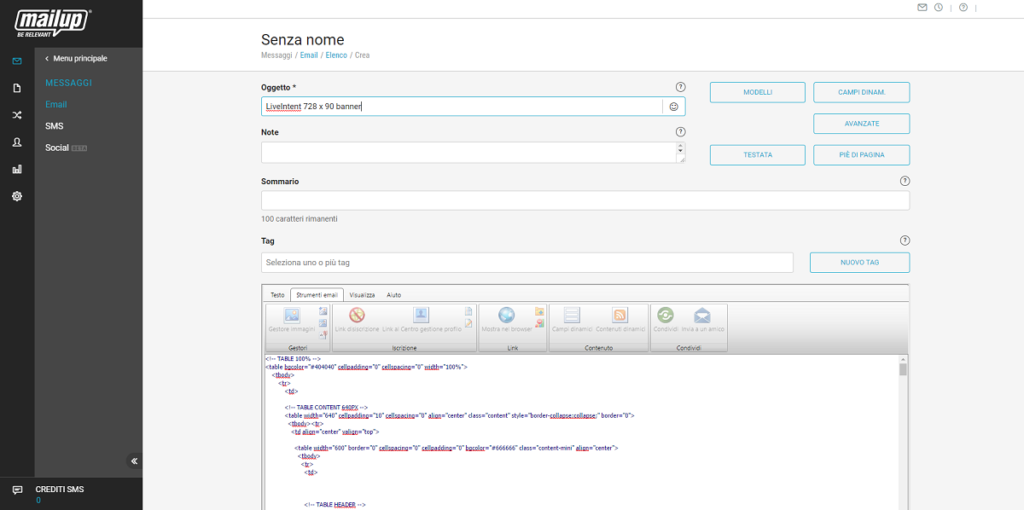 MailUp è partner ufficiale di LiveIntent, a garanzia che i parametri passati tra le due piattaforme siano certificati per funzionare correttamente. Ecco dunque, in concreto, come costruire un messaggio email che contenga blocchi di pubblicità gestiti da LiveIntent.