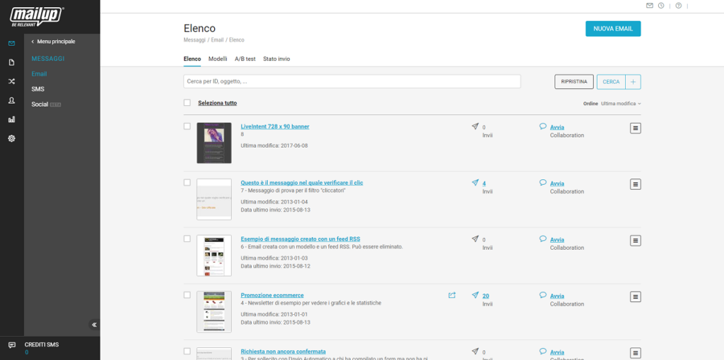 I messaggi saranno visualizzati nell’Elenco della piattaforma MailUp nella modalità seguente: