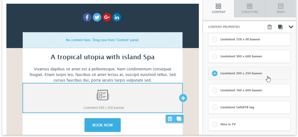 Come creare una newsletter contenente pubblicità LiveIntent, con BEE