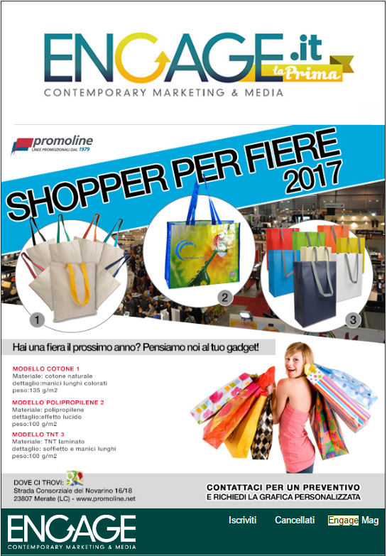 Le sponsorizzazioni tramite email possono assumere varie forme: possono riservarsi a specifiche parti o sezioni dell’email, oppure riguardare l’intero messaggio, che di fatto viene “affittato” a terzi per invio sulla tua mailing list. Così fa, ad esempio, Engage.it nel messaggio qui sotto. Se portato avanti con intelligenza e rispetto del lettore, questo tipo di operazioni di co-marketing può risultare estremamente efficace, specialmente se va a intercettare un database affine e potenzialmente interessante per l’advertiser.