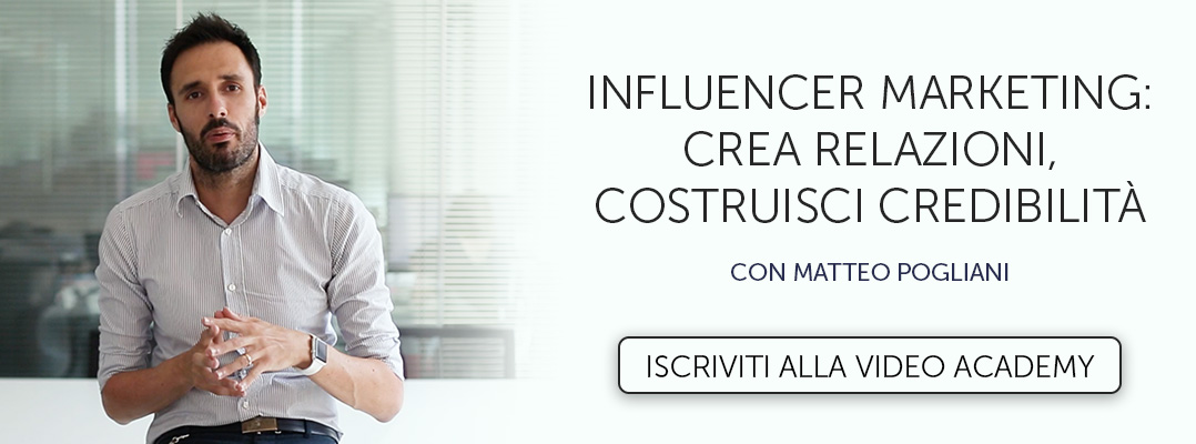 Se vuoi imparare a strutturare una strategia di Influencer Marketing da zero (e senza commettere errori), puoi partire dalla Video Academy sul tema con protagonista Matteo Pogliani: basta iscriversi qui.